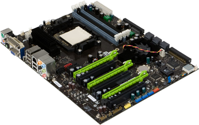 Vous vous souvenez très certainement de la belle époque des chipset NVidia sur nos cartes mamans, l’époque où le NFforce 4 était le northbridge phare pour le socket 939 et encore avant lui le NForce 2 pour le bon vieux socket A, eh bien comme certaines rumeurs le laissaient fortement supposer ce serait bel et bien la fin des chipsets chez NVidia. Du fait que le géant vert n’ai pas acquis la licence du bus DMI qui équipe les derniers CPUs Intel comme les Atoms de seconde génération et les Core ix, il ne peut donc pas développer de plate-forme pour ces derniers, et vu que les processeurs Intel sont majoritaires sur le marché et qu’AMD développe maintenant d’exellent chipsets lui-même cela laisse peu de place aux puces du caméléon. Sachez quand même que les cartes mères NForce seront quand même encore disponibles un moment, en particulier pour l’entrée de gamme AMD qui s’en satisfait assez bien. Mais c’est donc le baroud d’honneur… (Source: THFR)