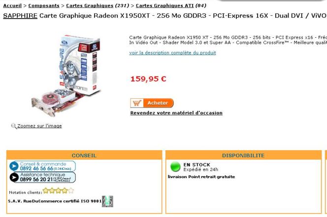 Pour 160 euros, on trouve généralement des X1950 PRO ou 7950 GT, nettement inférieures.