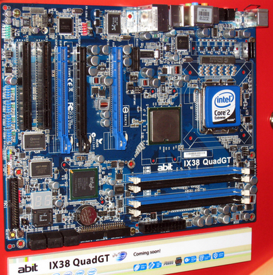 Abit a présenté au Computex deux cartes mères plutôt spéciales, en effet elles intègrent un régulateur de tension numérique (PWM) pour distiller la tension la plus stable possible, les plus avertis se rappeleront avec une certaine émotion le yoyo des tensions des cartes Asus. Les deux cartes sont architecturées autour du X38, le chipset haut de gamme d’Intel. Pour être sur des effets recherchés, Abit a monté aussi des capacitors solides qui ont une meilleure longévité. Il faudra attendre encore pour voir sur les étalages de nos marchands les IX-X38 Max et IX-X38 QuadGT. Merci à Presence-PC pour les photos.