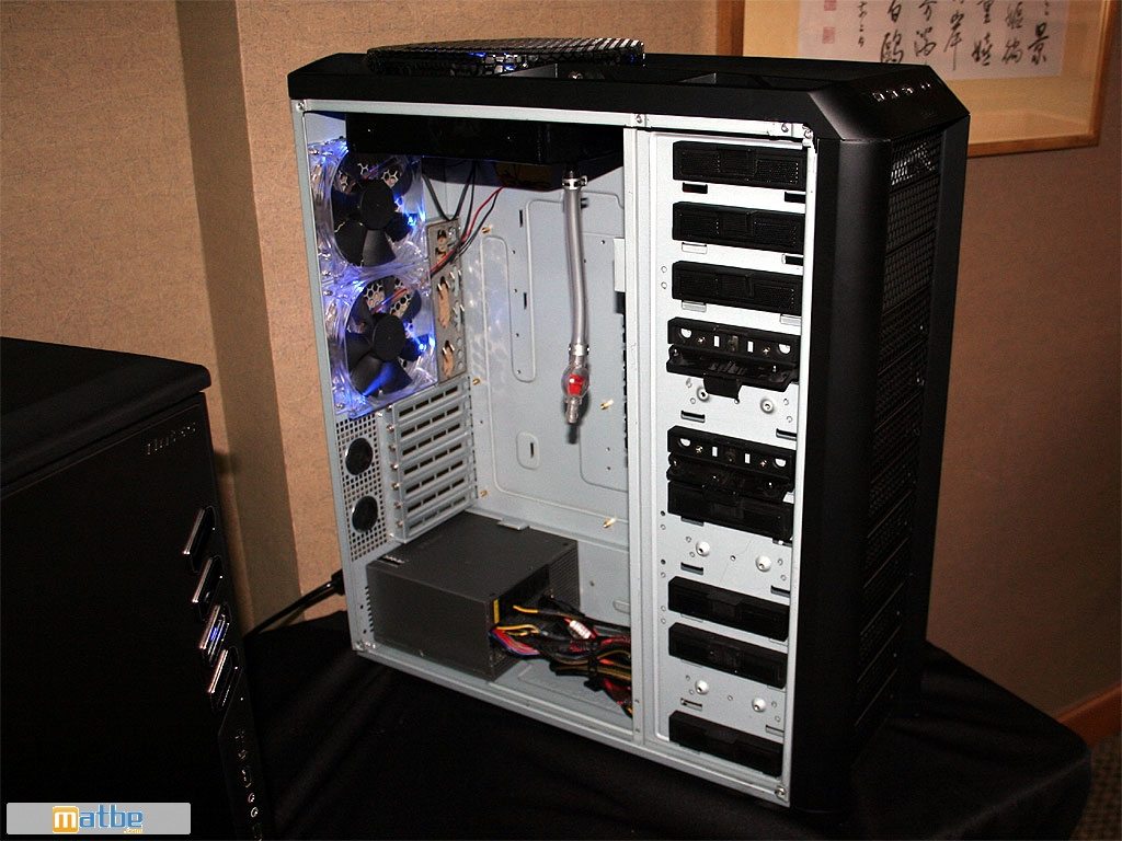 Antec qui proposait déja le boitier vedette Nine hundred dont vous pourrez lire notre test sur ces quelques pages proposera prochainement la version big Twelve hundred . Au menu de cette version plus de périphériques, 12 au total, d’où le nom. La ventilation déjà excellente sur le "900" devient incontournable sur le "1200" : deux ventilateurs de 120 mm à l’arrière avec potentiomètre pour réguler la vitesse, le même en façade avant, et le désormais traditionnel 200mm sur la face supérieure. De plus ce 200mm est équipé pour s’intégrer à un système de watercooling. Bref un futur hit chez Antec qui a l’habitude des accessits. Remerciements à Matbe pour les photos.