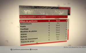 - Et c’est vrai qu’il est sale ce colin, une des spécificité de ce jeu est la prise en charge des particules et salissures en temps réel. Ce jeu est une ode aux replays, ils sont vraiment somptueux avec une fonction de "ralenti" sur le replay qui rappelle le bullet time de Matrix. Nous avons réglé les options comme suit pour le jeu (cliquez sur les images miniatures pour agrandir)