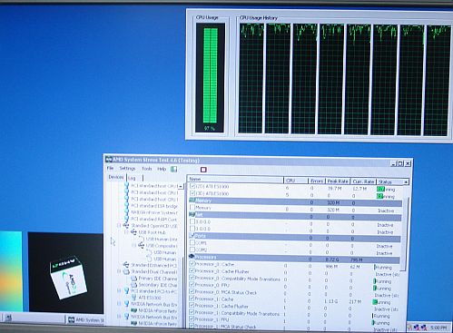 Cette image provient de partenaires qui ont pu se monter une config serveur à base de deux processeurs K10 Barcelona, chacun étant équipé de 4 cores en natif. Comme celà était su de tous lors du Computex, les processeurs ne tournent au mieux qu’à 1.6 GHz, et le report en début d’année prochaine ne fait plus aucun doute. Et alors me direz vous? Et bien voilà l’image du task manager sous Windows quand une telle machine tourne. Dommage que celle ci ne soit pas plus grosse, mais l’espoir fait vivre…..