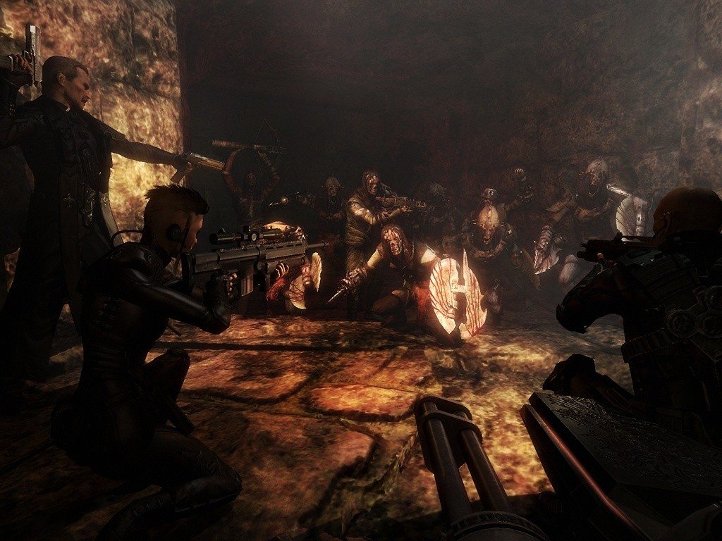 Codemasters dévoile un peu plus de son jeu grosse licence tirée de l’univers du tordu et effrayant Clive barker. Cet écrivain qui a pour habitude de mettre en scène les combats Bien/Mal dans ses bouquins a servi de base pour un FPS sanglant et flippant: Jericho. Nous en avions déjà parlé il y a quelques temps, aussi voilà des captures bien fraiches et riches en hémoglobine. Le premier Clive Barker’s Undying ayant été un jeu parmi les plus flippant qui soit, Jericho semble bien parti pour suivre le chemin de son grand frère. Prévu sur XBox360 et PC pour octobre 2007.