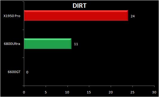 Dans ces conditions la X1950 Pro fait tout de suite parler la poudre en doublant le framerate de la 6800Ultra. Même si 24 i/s peuvent sembler insuffisants, le jeu reste tout à fait jouable. A noter qu’en mettant les détails sur mini on arrive à une petite vingtaine d’images par seconde sur la 6800 permettant de jouer. (même si ce n’est pas la panacée)
