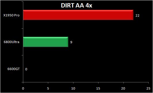 En activant l’antialiasing la perte est très limitée sur la X1950 (mesuré plusieurs fois pour s’assurer de la véracité de ces résultats) alors que la 6800Ultra plonge encore un peu plus.