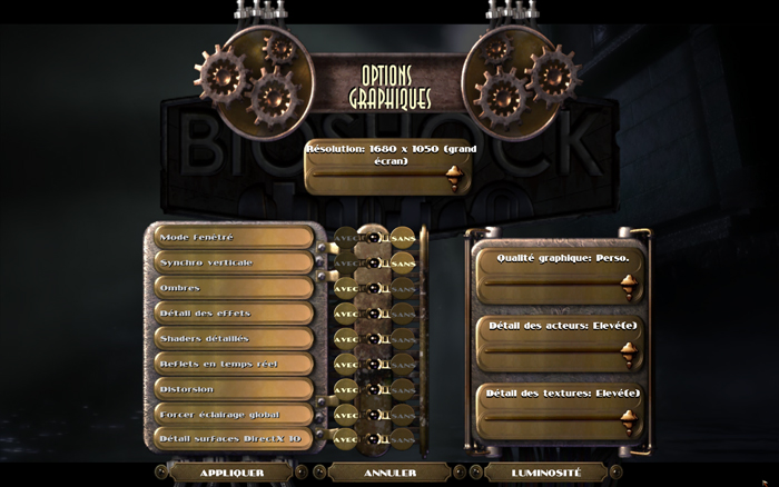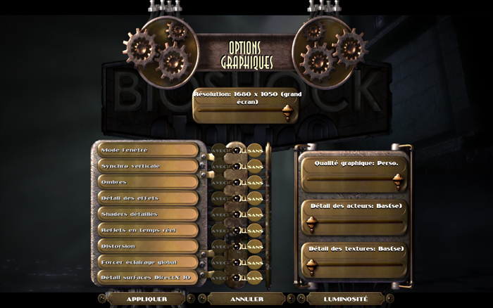 - les options, lorsqu’elles ont été réglées au minimum, sont ainsi :
