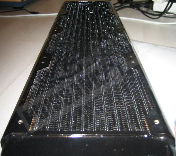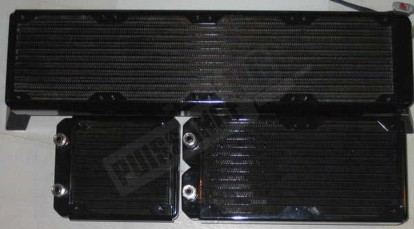 Un paramètre important, également à prendre compte avant l’acquisition d’un tel radiateur, c’est bien son encombrement et tout particulièrement sa longueur. Ainsi, un radiateur simple voir double sera relativement facile a intégrer au sein d’un boitier pour peu que l’on soit bricoleur, pour un quadruple c’est une autre paire de manches même dans de vastes boitiers LianLi. Jugez plutôt de sa longueur face à des radiateurs plus conventionnels (BI GT Stealth 120 et BI Xtreme²). Impressionnant: