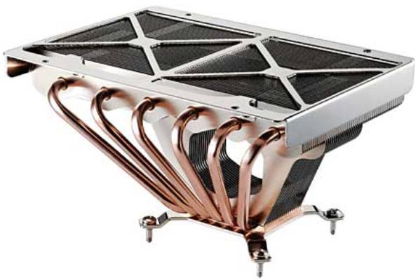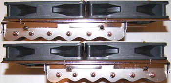 Le Cooler Master GeminII est un modèle sans équivalence actuellement dans le monde des radiateurs pour processeurs. Livré sans ventilateur, il est conçu pour pouvoir en accueillir 2 de 120mm chacun, et ce côte-à-côte !