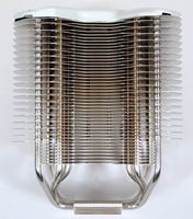 Aucun ventilateur n’est fourni dans le bundle, mais en contrepartie le prix est placé à 40€. Il faudra donc néanmoins compter de 5 à 20€ environ pour l’ajout d’un ventilateur 120mm, ce qui le place une fois le ventilateur compris dans le haut de gamme. Prix très raisonnable si vous l’utilisez en passif ou possédez déjà un ventilateur, mais donc juste « moyen » s’il vous faut également acheter le ventilateur à part.