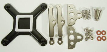 Si notre exemplaire de presse était en toute logique équipé des 2 kits de fixation baptisés comme vous le voyez sur la photo « LGA 775 » et « AMD AM2 », un seul des 2 kits sera par contre présent lors de votre achat de ce ventirad.