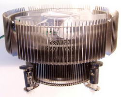 Sans surprise donc, le Radbox QX9650 reprend donc le design cher à Zalman, avec tout de même des arrêtes bien plus droites ce qui lui donne ce design finalement unique. L’aluminium est de rigueur bien sûr, coût oblige, ce qui n’est également pas une couleur courante pour ce type de design. Le ventilateur transparent à LEDs bleues est la petite touche visuelle qu’Intel a décidé de donner à son ventilateur. L’ensemble est plutôt plaisant à l’oeil pour un ventirad « gratuit ».