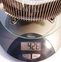 Le radbox QX9650 est étonnamment léger, 426g ventilateur compris, soit le même poids que le Radbox « normal », pourtant bien plus petit. La conception quasi entièrement en aluminium et les ailettes fines sont à l’origine de ce poids.