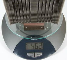 On commence par la masse du radiateur, qui affiche sur la balance 462g. Une valeur tout à fait raisonnable, un rien élevée mais c’était prévisible, la conception « trapue » du NH-U9B ne pouvant aboutir à un poids plume.