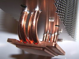 On note 4 gros caloducs en « U » qui viennent prendre appui sur la base en cuivre, et que les ailettes sont assez épaisses, plus que la moyenne des radiateurs « tour ».