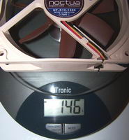 A ces 632g s’ajoute, il ne faut pas l’oublier, le poids du ventilateur NF-S12-1200. 146g en l’occurrence, une valeur dans la moyenne des ventilateurs de 120mm.