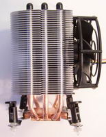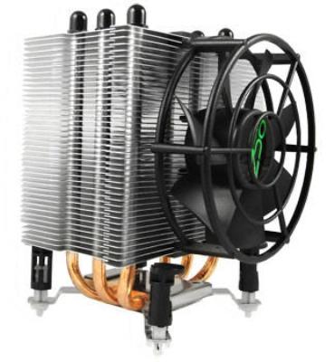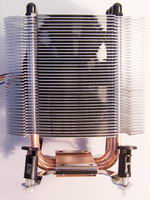 Les ailettes ne sont pas trop fines, et tiennent bien, le ventilateur, muni d’une petite grille est bien vissé aux ailettes, et les 3 caloducs font plutôt bonne impression. Rien à redire donc pour un si petit budget.