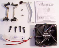 Le bundle du Vendetta est assez simple. On y retrouve les kits de fixations pour Intel et AMD, un sachet de pâte thermique d’assez mauvaise qualité, les attaches en caoutchouc pour le ventilateur et un adaptateur 3pins vers molex pour ceux qui préfèreraient relier le ventilateur à leur alimentation en 12V plutôt qu’à une prise PWM de la carte mère.