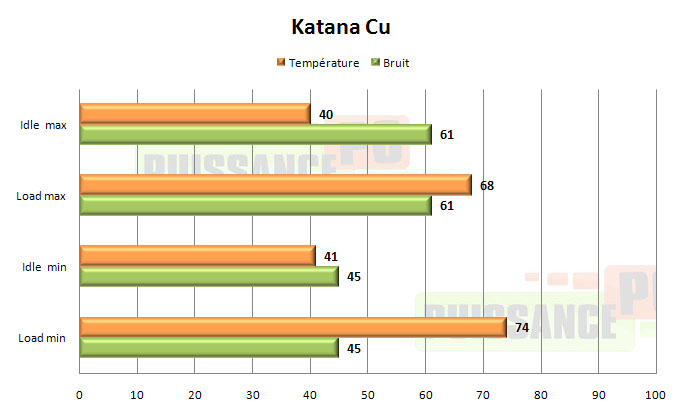 Ses performances, sans être de pointe, le plaçaient dans les meilleures positions de sa gamme de prix, surtout une fois sous-volté, domaine dans lequel il excelle. Mais son système de fixation tiré par les cheveux a incité Scythe à sortir une nouvelle révision: le Katana 2, malheureusement uniquement disponible avec les ailettes en aluminium et sans variateur, même s’il est globalement tout aussi si ce n’est un peu plus performant.