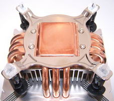 Les 6 gros caloducs (un de plus que l’Infinity) traversent la base du radiateur dans deux directions différentes, donnant un radiateur parfaitement identique sur toutes ses faces, un bon gros cube nous pourrions dire.