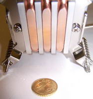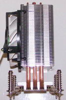 Seul petit défaut à notre goût: avec son poids plume, et destiné au marché du « premier prix », il aurait certainement été mieux de faire un système de fixation classique type radbox pour ne pas avoir à sortir la carte mère du boîtier. A signaler également qu’il est tout de même plus cher que beaucoup de références d’entrée de gamme que l’on trouve parfois à moins de 20€. La présence ainsi d’un concurrent tel que l’OCZ Vanquisher lui fait perdre la possibilité d’une note maximale, pour 17€ à peine le Vanquisher faisant quasiment aussi bien.