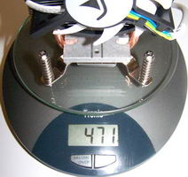 Comme son « physique » le laissait présager, le Silent Eagle CPU Cooler n’est pas un poids lourd, et dépasse à peine les 470g, soit à peine plus lourd que le radbox Intel. Une nouvelle prouesse pour ce ventirad.