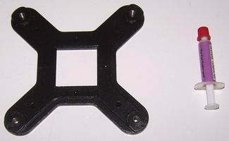 Il faut dire que le ventirad n’est compatible qu’avec le socket 775, résultat le module de rétention est d’origine fixé sur la base du radiateur, il ne restait plus à Spire qu’à fournir une plaque arrière, et un tube de pâte thermique.