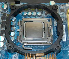 Avec son Core-Contact Freezer Sunbeam a mis au point un tout nouveau système de fixation. Pour le socket S775 seul un module de rétention et 4 clips en plastiques sont nécessaires.