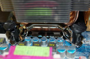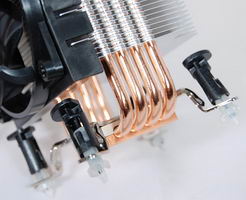 L’installation sur plateforme Intel S775 se fait donc sans besoin d’assemblage particulier sur le ventirad. Le système de fixation, de type radbox est en effet déjà installé puisque le ventirad n’est de toute manière prévu que pour le LGA775.