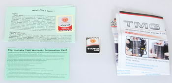 Pour faire simple, il n’y a pas véritablement de bundle avec le TMG i1. Thermaltake a pré-appliqué de la pâte thermique sur la base de son ventirad, résultat le bundle se résume à la notice d’installation, un carton de garantie et une publicité Thermaltake, le tout avec deux autocollants.
