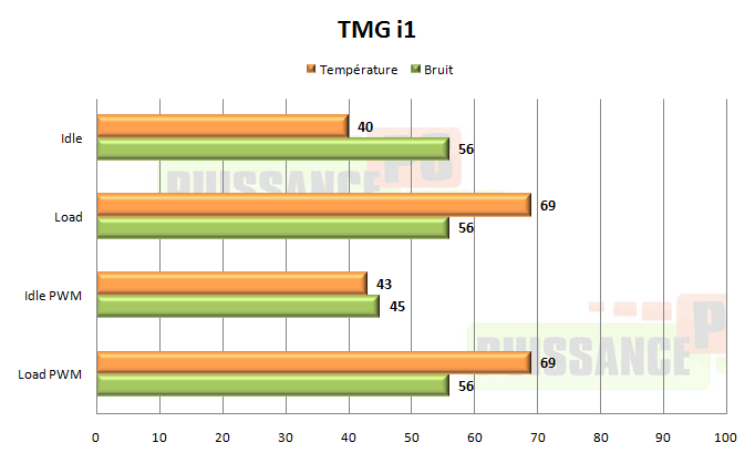 Pour ce qui est du PWM il fait ici aussi parfaitement son oeuvre, permettant au TMG i1 d’atteindre seulement 45dBA en idle.