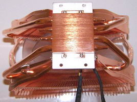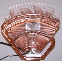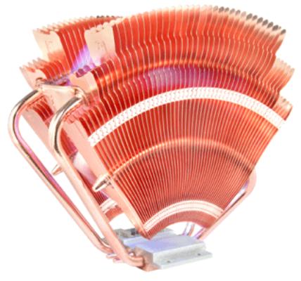 On note également la présence de « seulement » 4 caloducs, mais d’une longueur impressionnante puisqu’ils forment un arc de cercle venant traverser les ailettes sur toute leur largeur.