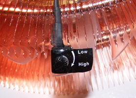 Enfin comme nous le précisions dans les caractéristiques du ventirad un petit potentiomètre est fourni pour permettre de faire varier la vitesse de rotation du ventilateur. Sa conception est assez bâclée avec un simple autocollant plastifié pour faire office de notice et un câblage grossier, mais il a au moins le mérite d’exister.