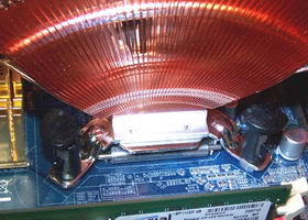 En effet, sur le site de Thermaltake, on peut voir sur la fiche produit du V1 une base magnifique, digne des modèles Scythe ou Zalman que nous verrons plus tard, et Thermaltake annonce pour son ventirad une finition miroir. Mais en pratique le résultat est tout autre que celui de la photo du site.