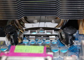 L’installation S775 est très classique. Les pièces nécessaires sont juste donc 2 vis, et 2 pattes de fixation à placer sur la base du radiateur.