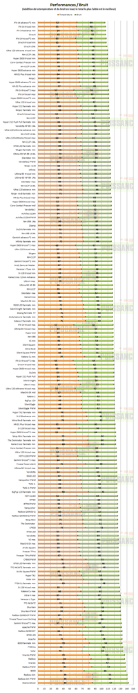 On retrouve globalement le même classement qu’avec le graphe précédent avec IFX-14, Orochi, Ultra 120 eXtreme ou encore NH-U12P.