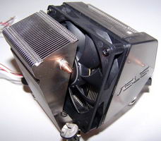Le design du V-Nardo est pour le moins étonnant avec son ventilateur incliné et décalé, et son radiateur en deux parties. Selon Asus ce design permet de refroidir les composants de la carte mère autour du socket.
