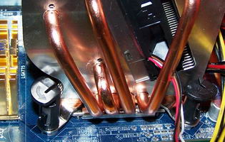 4 caloducs traversent la base du radiateur pour venir passer dans les 2 blocs d’ailettes. Si l’ensemble n’engage pas à supposer des performances de pointe, on imagine bien le V-Nardo distancer sans problème le radbox, principalement donc grâce à ses caloducs.