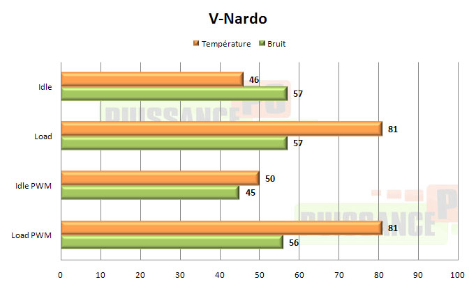 Le V-Nardo n’est pas un monstre de performances, cela on s’en doutait dès le début, mais on aurait espéré tout de même qu’il se détache plus du radbox Intel, avec ici seulement 3° de mieux en charge.