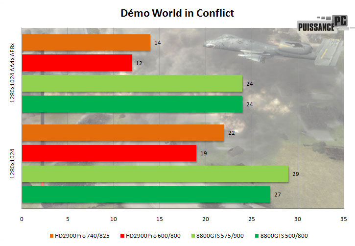 Voici le premier jeu DX10 de notre dossier.il s’agit de la démo qui possède son propre module de bench, bien pratique quand on a un dossier à faire. Toutes les options ont été mises à fond, sauf l’antialiasing de transparence qui impacte trop les performances. Tout comme RTS qui se respecte, celui ci est assez dépendant du processeur, c’est d’ailleurs un des rares cas où on peut être CPU limited en 1680 et filtres à fond!