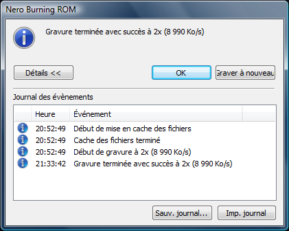 Après un peu plus de 40mn, le disque est terminé et parfaitement lisible! Vive le vrai 2x.