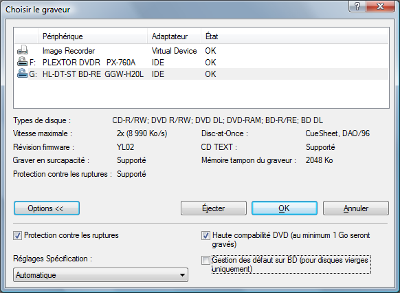En désespoir de cause, nous avons réalisé une ultime tentative avec Nero et en farfouillant dans les options du graveur, une en particulier nous a intrigués : la gestion des défauts sur BD. Nous avons donc décidé de la désactiver :