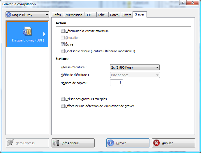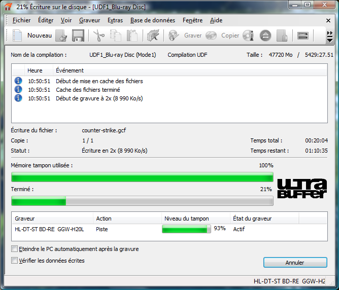 Même si le 2X du Blu-Ray correspond grosso modo à 9Mo/s, pour graver la bagatelle de 46Go on trouve le temps long :