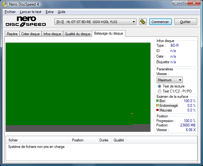 Voyons à présent le scan du disque obtenu à cette vitesse pour s’assurer que le gain de temps ne s’est pas fait au détriment de la qualité :