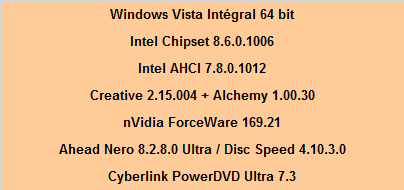 … ainsi que les pilotes/logiciels employés: