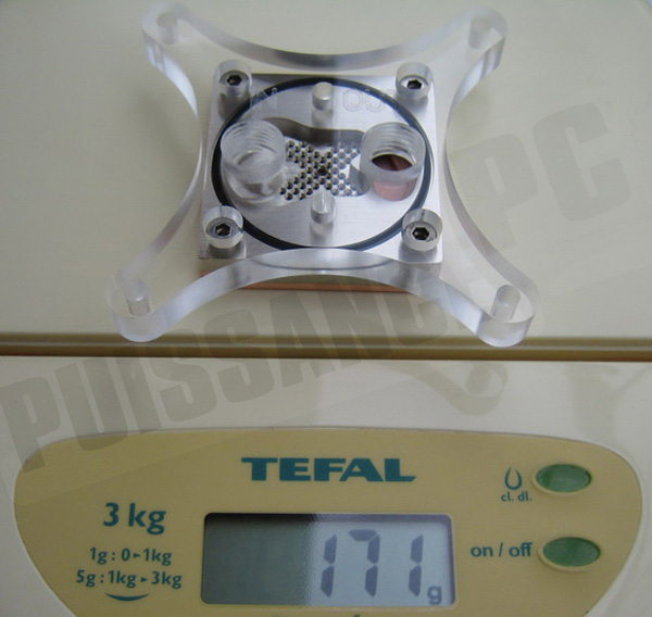 Voyons à présent l’impact du passage du plexi au métal pour la plaque intermédiaire en terme de masse total du waterbock. On commence par rappeler celle du XP High Flow: