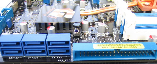 C’est déjà pas mal me direz vous, mais où diable se trouve le connecteur eSATA que l’on avait l’habitude de trouver chez Asus? Et bien il est passé à la trappe et c’est bien dommage ma fois surtout pour une carte mère de ce calibre! C’est d’autant plus étrange, qu’une puce additionnelle a été intégrée à la carte mère pour gérer un canal IDE et un floppy (les southbridge Intel les ayant délaissés) et que ces puces intégrent généralement 2 canaux SATA, de quoi fournir donc une prise eSATA à l’image de la P5B Deluxe…