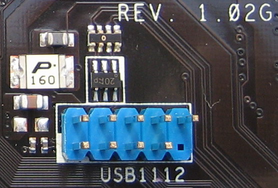 On retrouve d’ailleurs bien isolé entre les 2 connecteurs PCIE 16x, le connecteur pour les ports USB 11 et 12, comme pour nous faire oublier l’absence d’un bracket supplémentaire dans le bundle. Bon la j’exagère, mais tout de même c’est ballot.