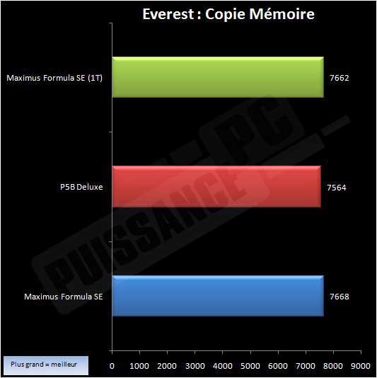 A nouveau une légère supériorité du X38, par contre le mode 1T n’apporte rien ici. Qu’en est-il de la copie mémoire?
