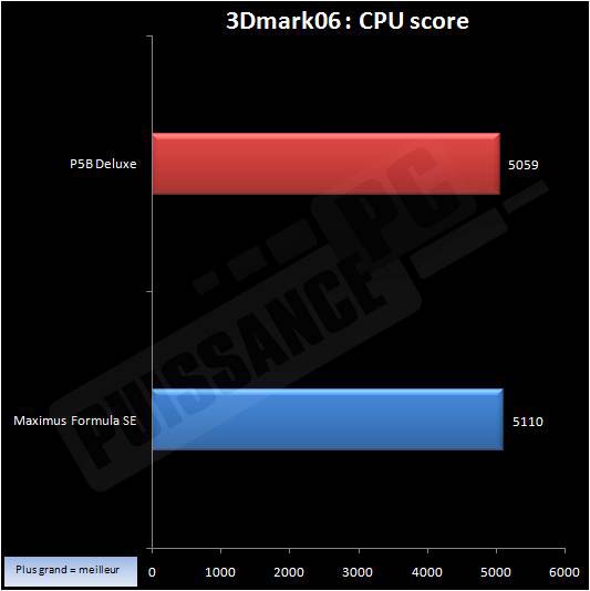 L’incontournable 3Dmark06 va nous donner une première idée des performances ludiques de cette Maximus, attaquons par le score CPU:
