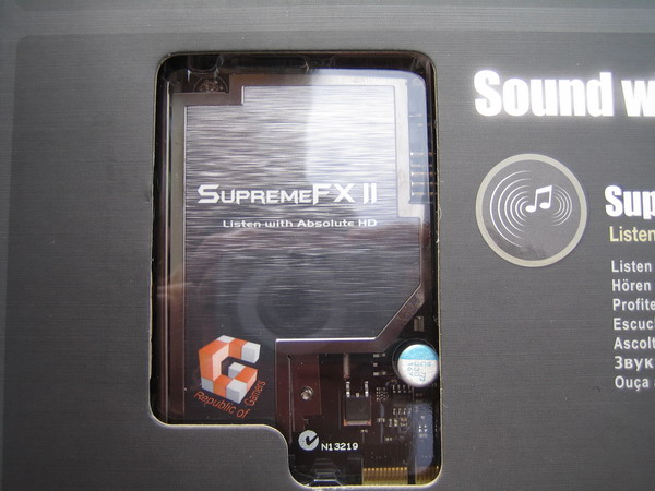 Un coup d’oeil plus précis sur l’ouverture inférieure dévoile la carte son PCIE fournie en bundle et dénomée Supreme FX II: